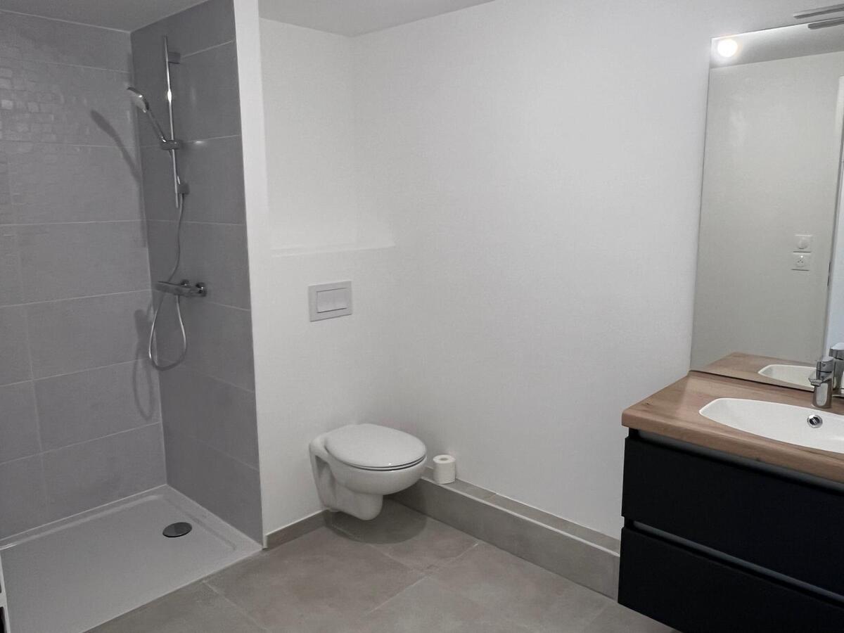 Au 1er étage d'une petite copropriété neuve, située à proximité des commodités , beau T2 de 43.60m² avec terrasse sans vis à vis composé d'une pièce de vie avec cuisine US aménagée et semi équipée ( four/plaque/hotte) , d'une chambre avec dressing, une salle d'eau avec WC . Trés lumineux , chauffage par climatisation réversible . Une place de parking privative en sous sol sécurisé complète ce bien rare à la location.