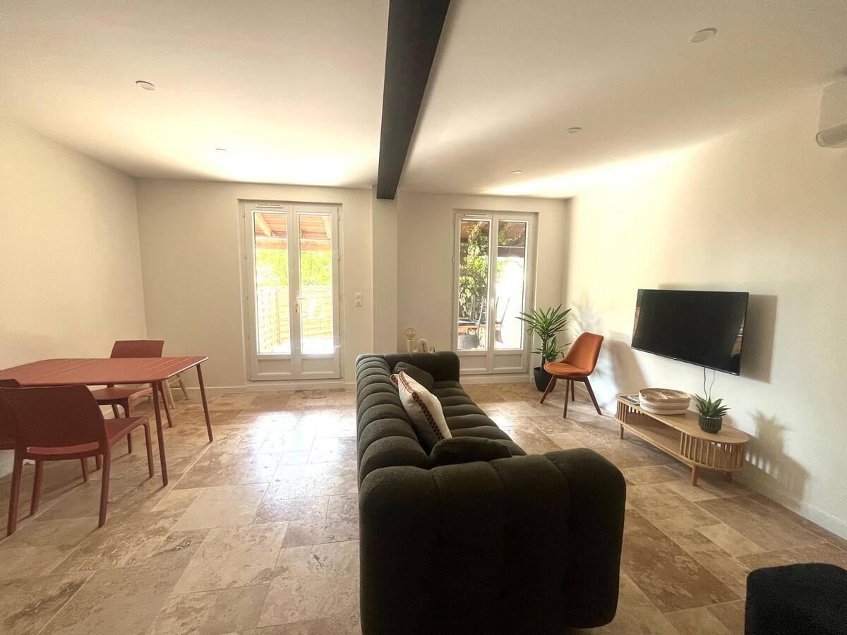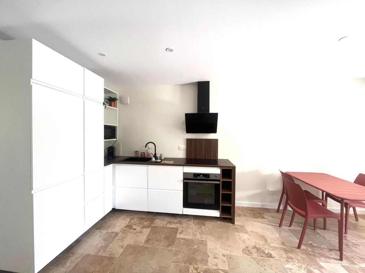Ce bien entièrement rénové , avec des prestations de qualité, se compose au rez-de-chaussée d'un séjour lumineux avec cuisine ouverte aménagée et entièrement équipée, d'un WC séparé, d'une salle d'eau moderne et d'une chambre avec placard.